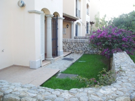 Die Wohnfläche von 125m2 zzgl. 25 m2 überdachter Terrasse und einem privaten Gartenanteil von ca. 60 m2 teilt sich auf in einen Wohn-Essbereich mit Kamin, 2 Doppelschlafzimmer mit Bädern en suite, ein Gäste-WC, sowie eine komplette Einbauküche.