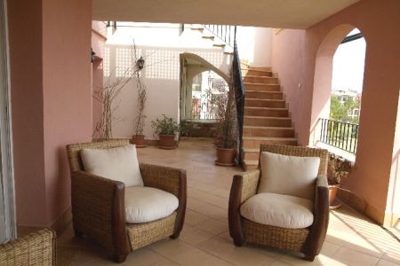 Este lujoso ático con vistas al golf y parcialmente al mar, esta situado en un exclusivo complejo a pie del campo de golf. La marina y playa de Puerto Adriano, así como varios restaurantes están a pocos minutos.