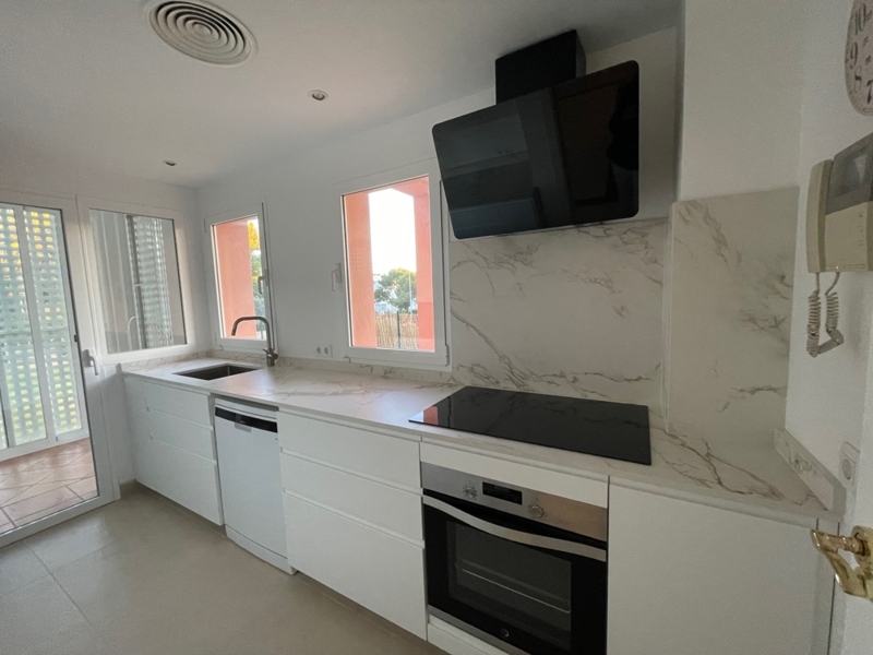 Die Wohnfläche beträgt 145 m2 zzgl. 30m2 überdachter, teils verglaster Terrasse und privatem Garten, aufgeteilt in einen großen Wohn-Eßraum mit Zugang zur Terrasse, 3 Schlafzimmer mit 3 Bädern ( 2 davon en Suite) und eine komplett ausgestattete Küche mit Wirtschaftsraum.
