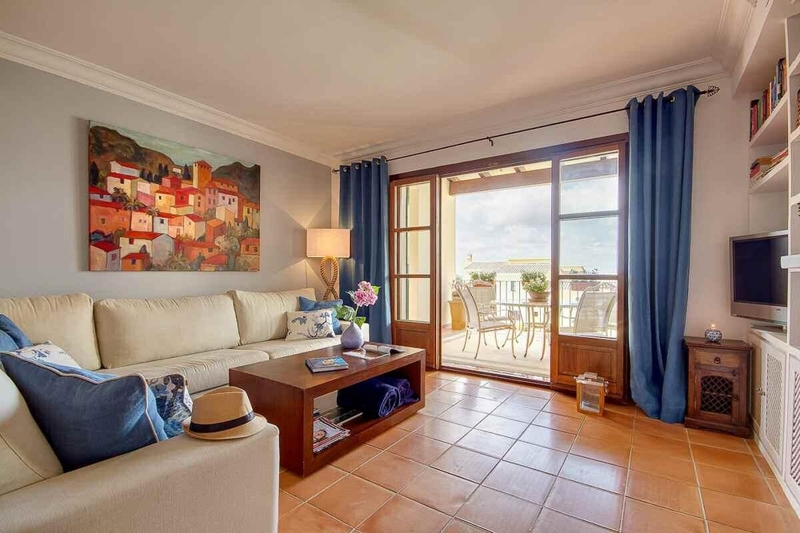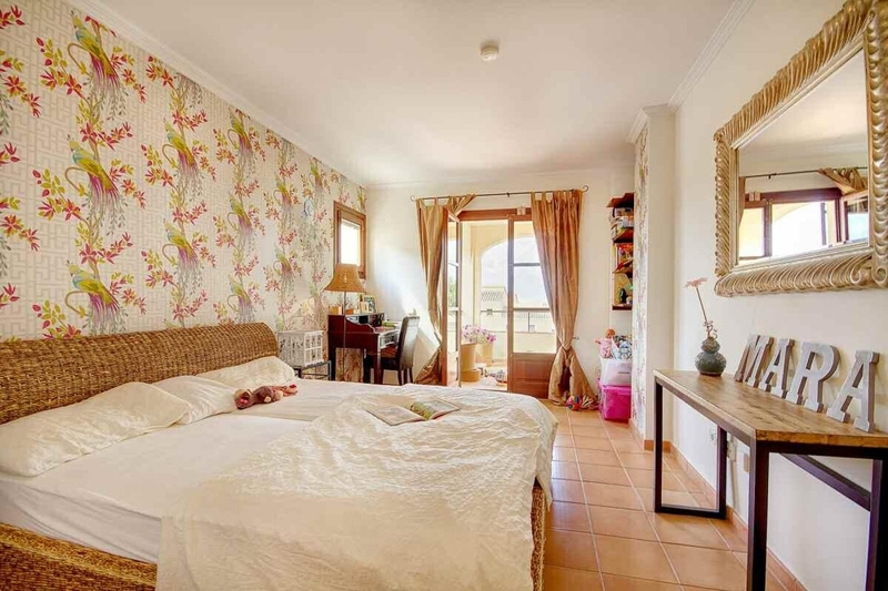 Die Wohnfläche von 179 m2 + 43 m2 überdachter Terrasse sowie einer Dachterrasse von 57 m2 bietet auf 2 Etagen folgende Räumlichkeiten: auf der unteren Ebene befinden sich ein großzügiger Wohn-Eßbereich mit Kamin und Zugang zur überdachten Terrasse, 2 Schlafzimmer mit Bädern en Suite, eine komplett eingerichtete Küche und ein Gäste-WC. Auf der oberen Etage befindet sich ein weiteres, großes Schlafzimmer mit Bad en Suite sowie die Dachterrasse.