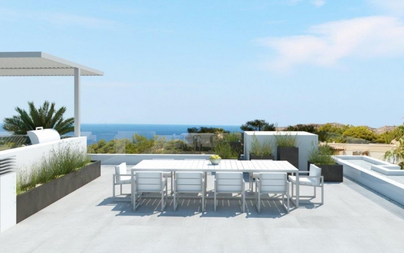 Esta extraordinaria villa con vistas al mar está situada en una parcela de 1.300 m2 en una de las mejores zonas cerca de la marina Port Adriano.