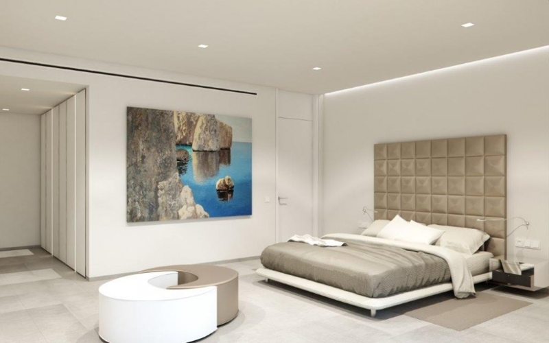 La superficie construida de 777 m2 incluyendo terrazas se distribuye de la forma siguiente: en la planta baja hay 4 habitaciones con baño, todas con acceso directo a una de las dos piscinas y al jardín.