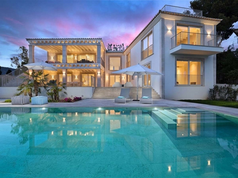 This elegant villa, built in a modern Mediterranean style, is situated in a prime location of Bendinat on a plot of 1.627 m2. The constructed area is 990 m2. The villa was built to the highest quality standards with the latest tecnology and completed in 2017.