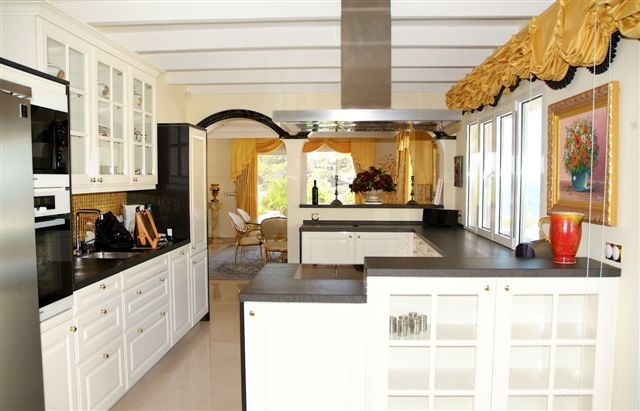 Ausstattung: Fenster mit Sicherheitsglas, Fußbodenheizung, Klimaanlage(w/k), Einbauküche (Haupt- und Gästehaus), Einbauschränke, Telefon , Internet (ADSL), Alarmanlage, SAT-TV, Bose-Musiksystem, automatische Tore, Video-Gegensprechanlage.