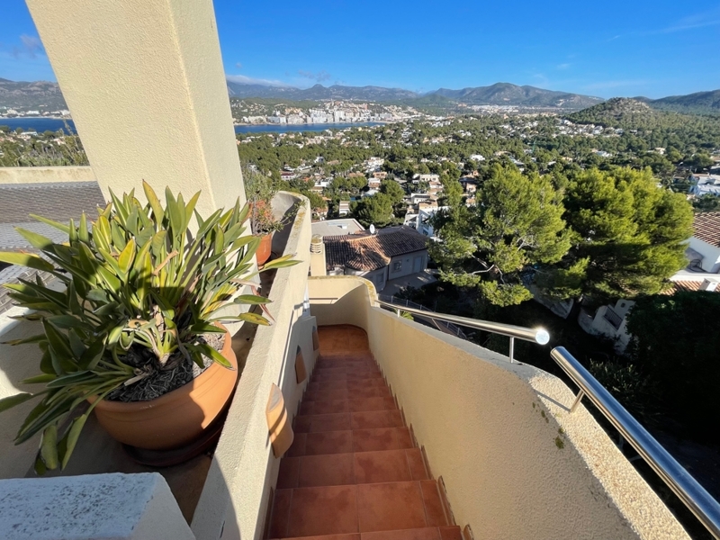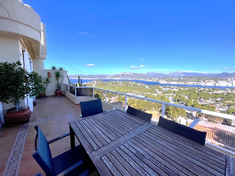 This refurbished 2 bedroom penthouse, with breathtaking views, is situated in an elevated area of Santa Ponsa, at just a view minutes drive to the luxury port and beaches and various golf courses, restaurants, shops and supermarkets. Palma and the airport can be reached within 20-30 minutes.